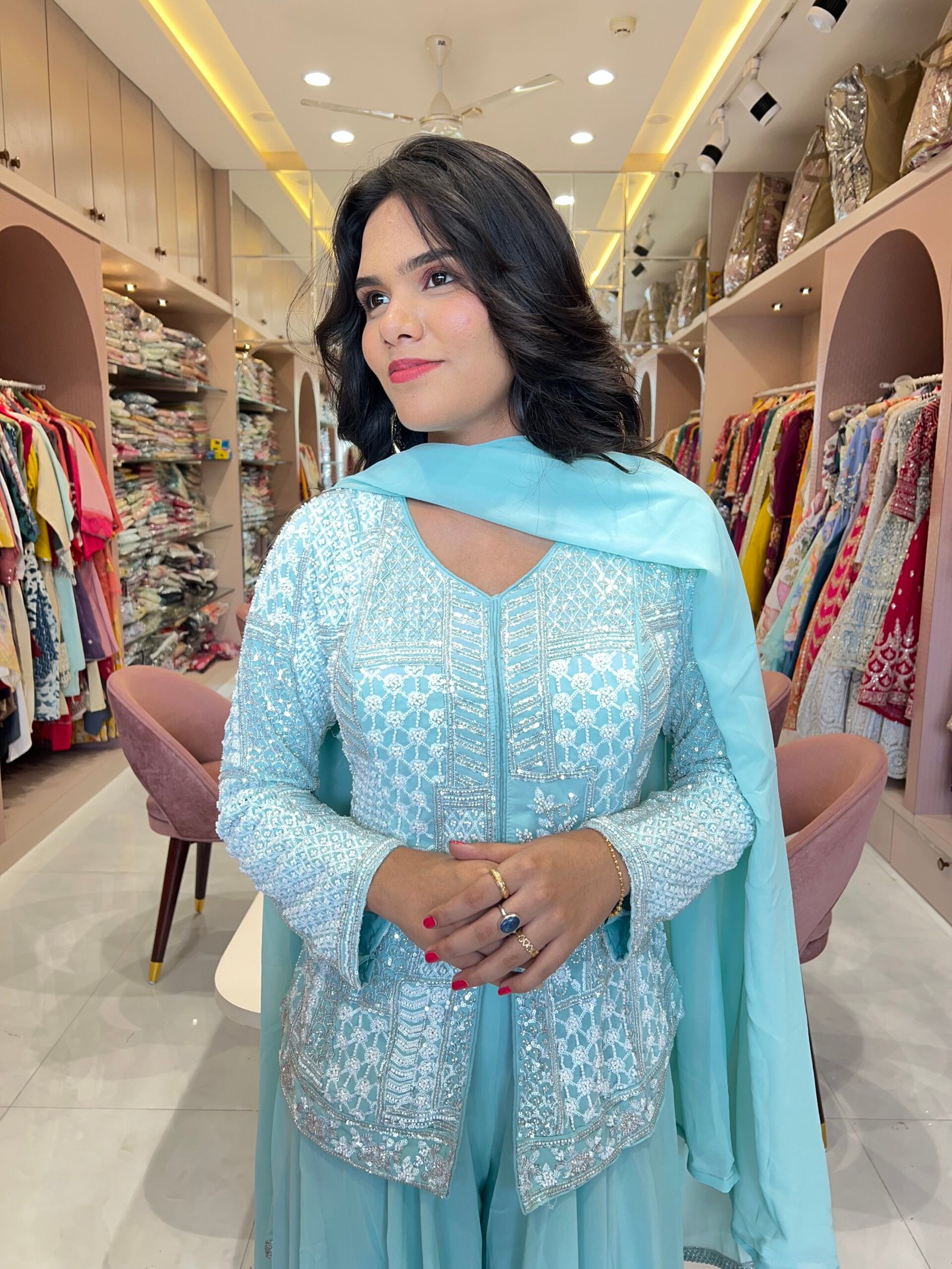 Step into timeless elegance with this navy Paplon-style crop top set, adorned with exquisite hand embroidery and dazzling stone work — a perfect fusion of tradition and contemporary charm.