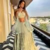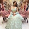 A graceful pista green georgette lehenga with dazzling sequin work, paired with a fully handworked blouse and a soft net dupatta. An elegant choice for weddings and festive celebrations.