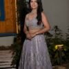 Elegant Lavender Embroidered Lehenga Set crafted in flowy georgette, featuring intricate handwork on a stylish sleeveless blouse. The beautifully patterned skirt shimmers with fine detailing, offering a graceful silhouette. Available in Green and Lavender, this lehenga is perfect for weddings, receptions, and festive celebrations, blending tradition with modern elegance effortlessly.