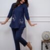 Navy Blue Printed Kurti Pant Set Stylish Casual Ethnic Co-ord Outfit